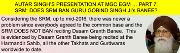 AUTAR SINGH’S PRESENTATION AT MGC EGM … PART 7: SRM: DOES SRM BAN GURU GOBIND SINGH JI’s BANEE?