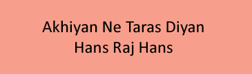 Hans Raj Hans – Akhiyan Ne Taras Diyan
