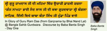 ਸ਼੍ਰੀ ਗੁਰੂ ਰਾਮਦਾਸ ਜੀ ਦੀ ਮਹਿਮਾ ਵਿੱਚ ਉਚਾਰੀ ਫ਼ਾਰਸੀ ਰਚਨਾ “ਗੰਜ ਨਾਮਹ” ਭਾਈ ਨੰਦ ਲਾਲ ਜੀ ਦੀ ਕਥਾ ਗੁਰਦਵਾਰਾ ਸ਼੍ਰੀ ਬੰਗਲਾ ਸਾਹਿਬ, ਦਿੱਲੀ ਵਿਖੇ ਬਾਬਾ ਬੰਤਾ ਸਿੰਘ ਜੀ ਮੁੰਡਾ ਪਿੰਡ […]
