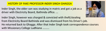 History Of Fake Prof Inder Singh Ghagga